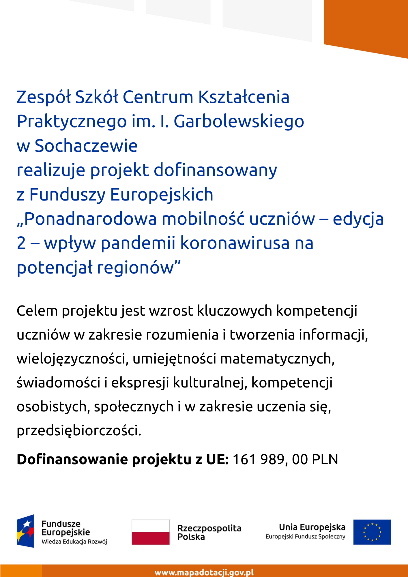 PMU 2021 A A A Przebieg mobilności w projekcie edukacyjnym 1 broszura - angielska wersja 1 broszura - grecka wersja 1 broszura - polska wersja 2 broszura angielski 2 broszura grecki 2 broszura polski 3 broszura angielski 3 broszura grecki 3 broszura polski Podsumowanie projektu PMU 2021 Szczegóły http://zsckpsochaczew.eu/ponadnarodowa-mobilnosc-uczniow/